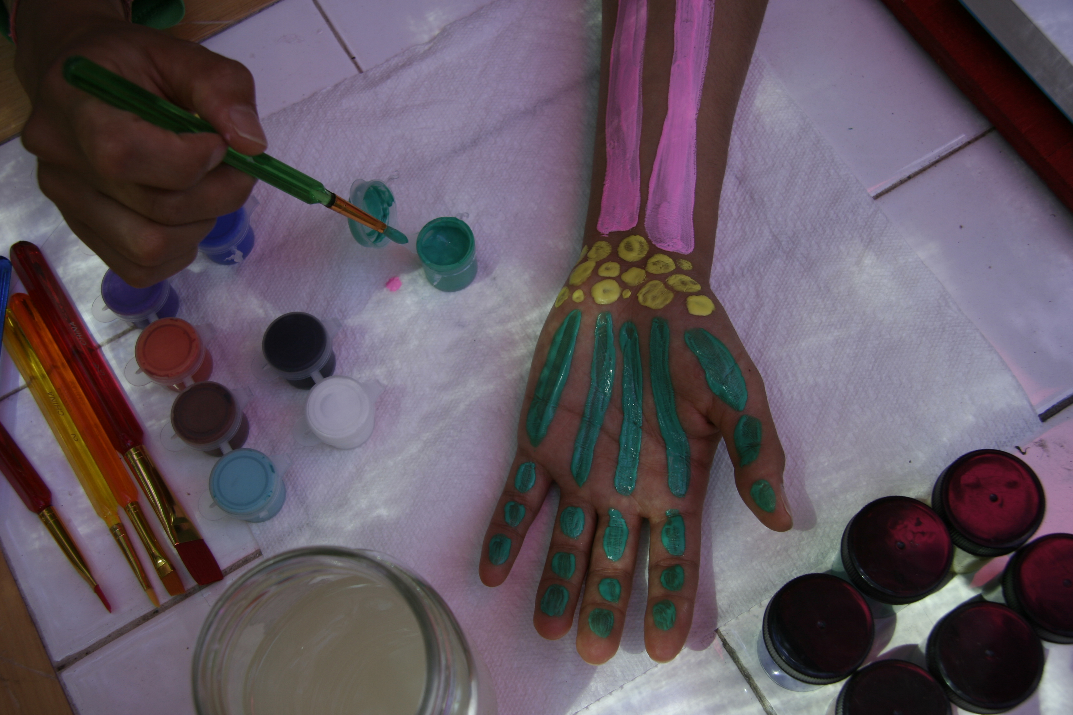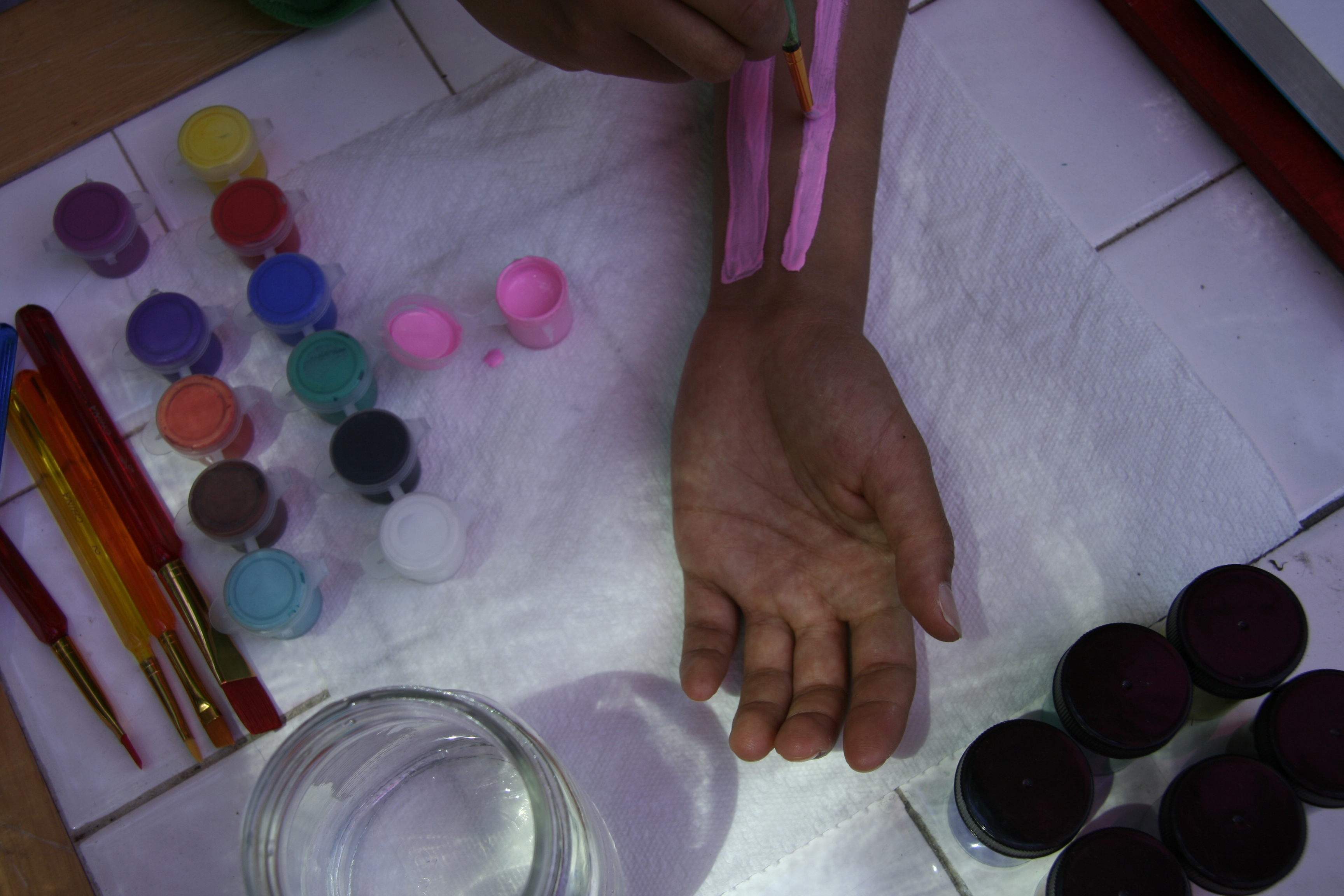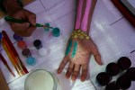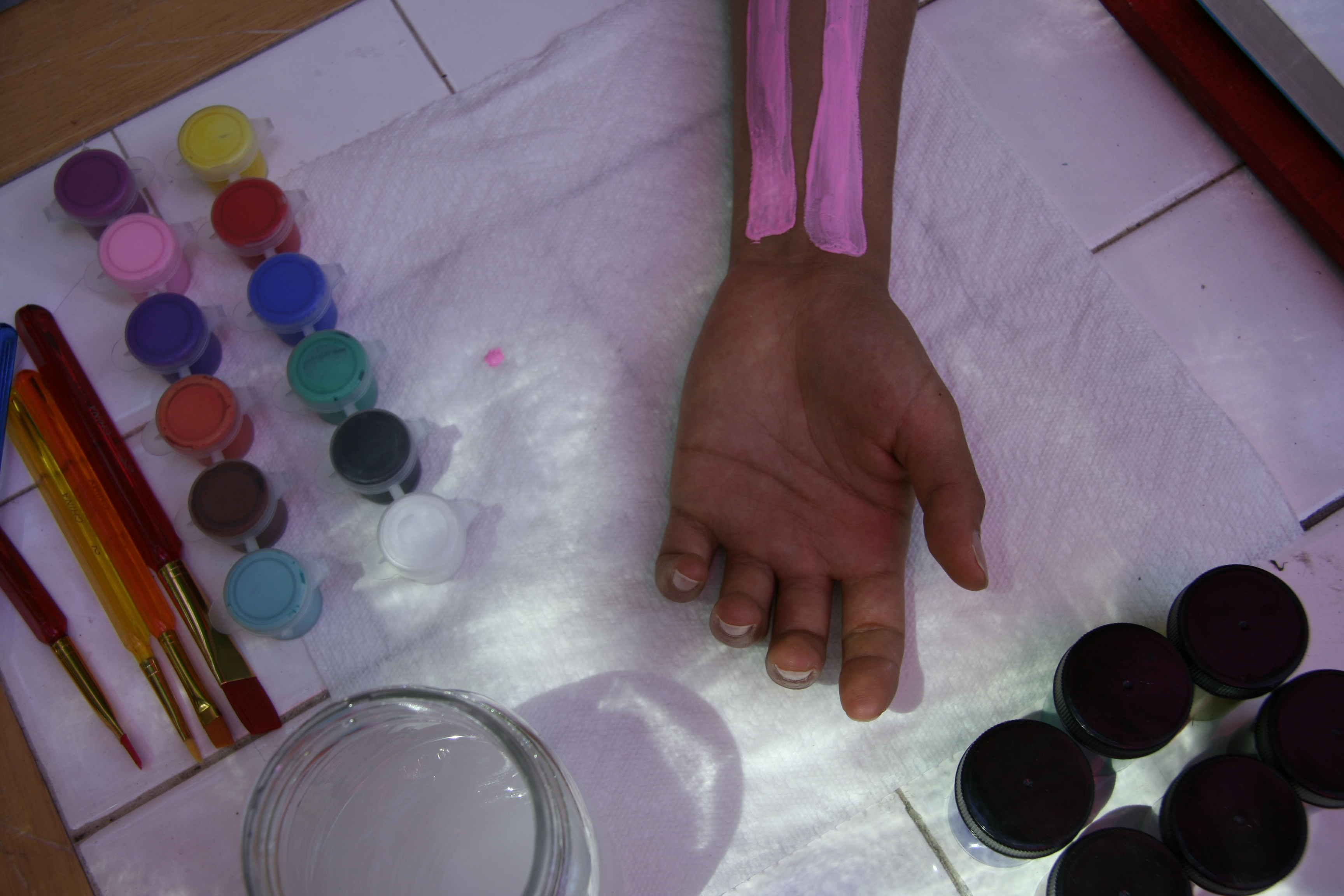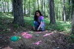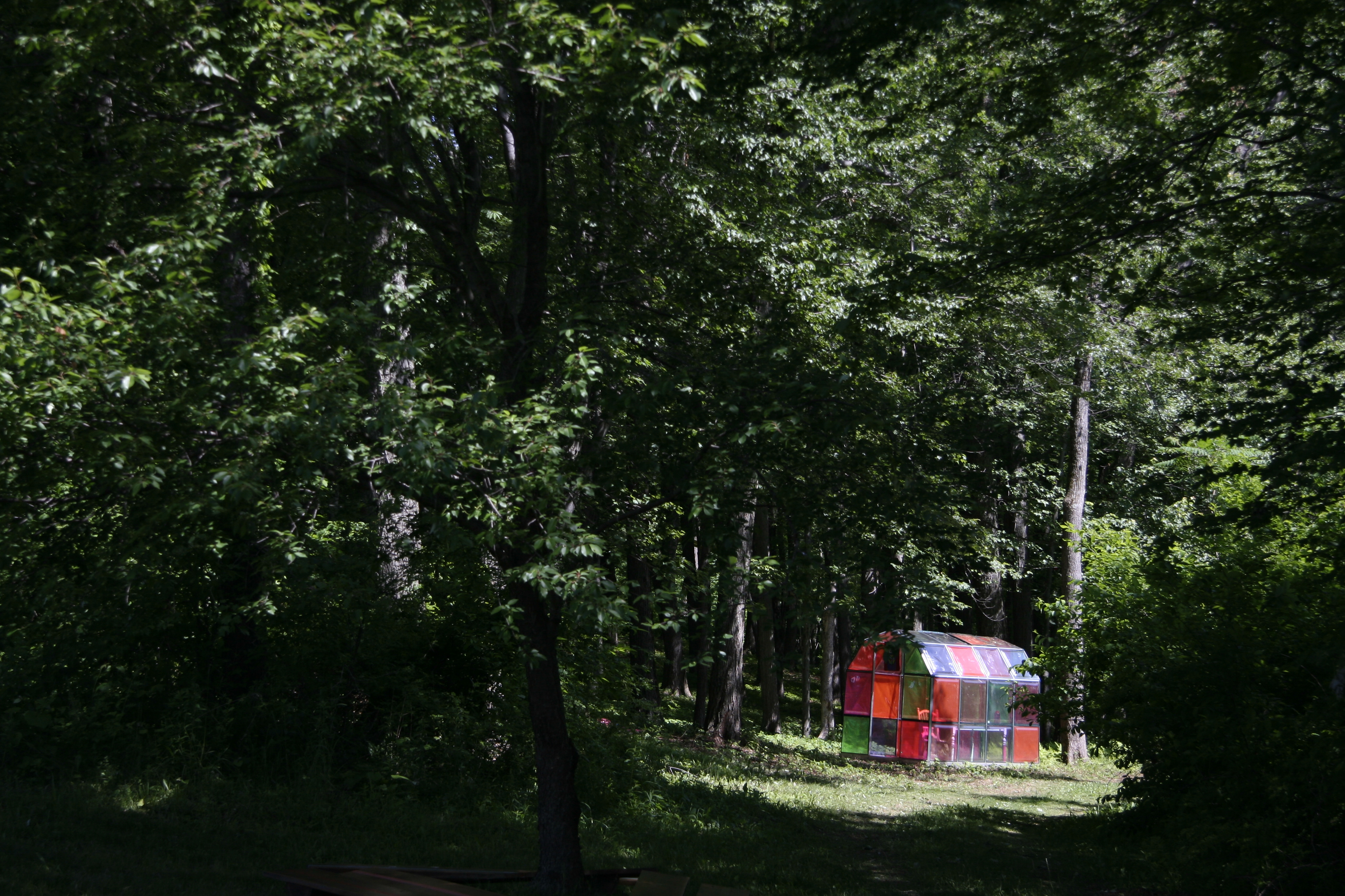 In the woods documents the discovery of the body of an inhabitant of the future utopian fantasy world No Place, created by Saya Woolfalk. As the artist founder of the group of Empathics, she and the rest of her group set up a greenhouse to excavate the site. They come to believe that the bones were sent to them by these future inhabitants.