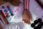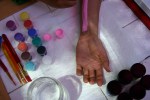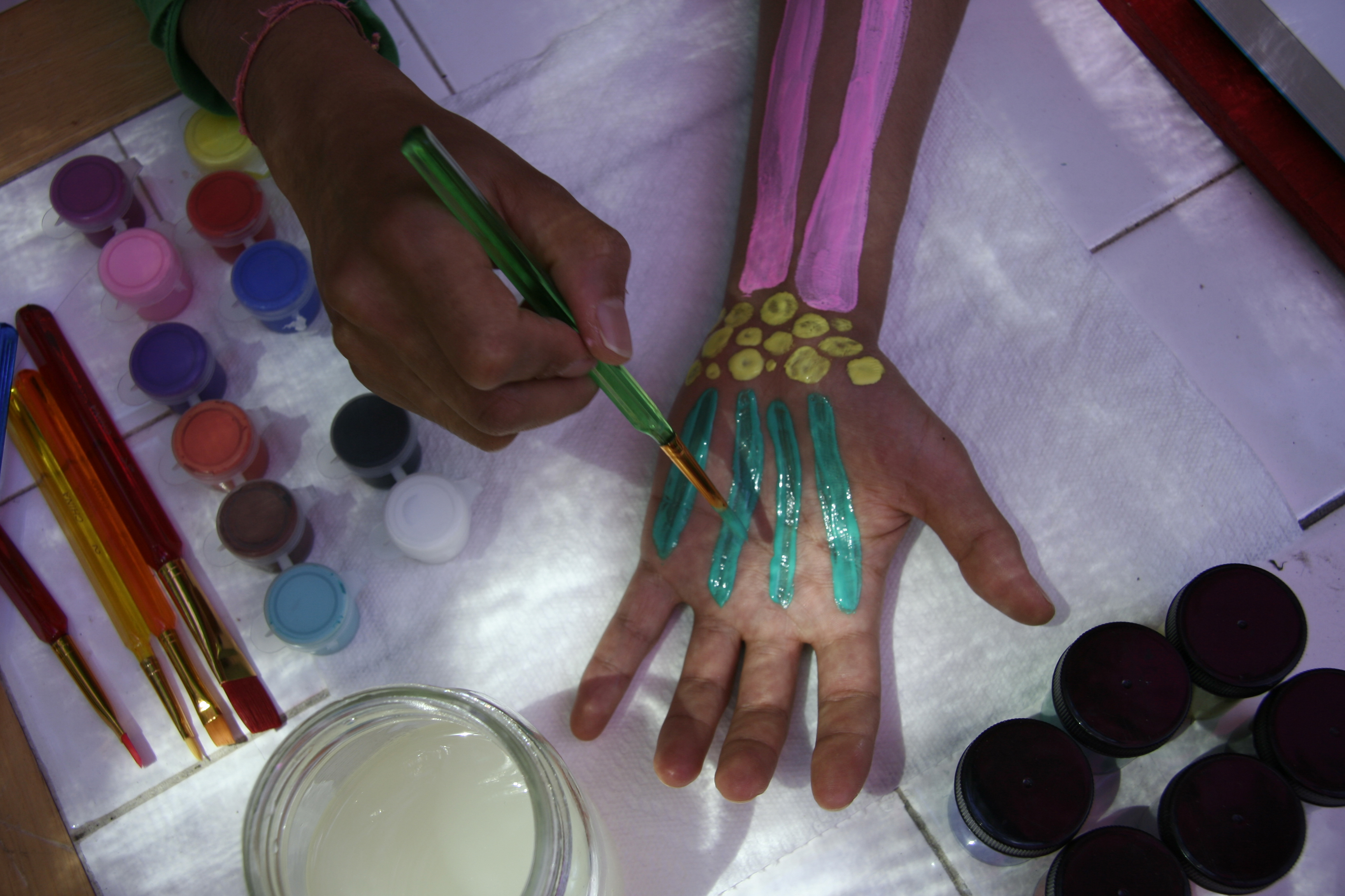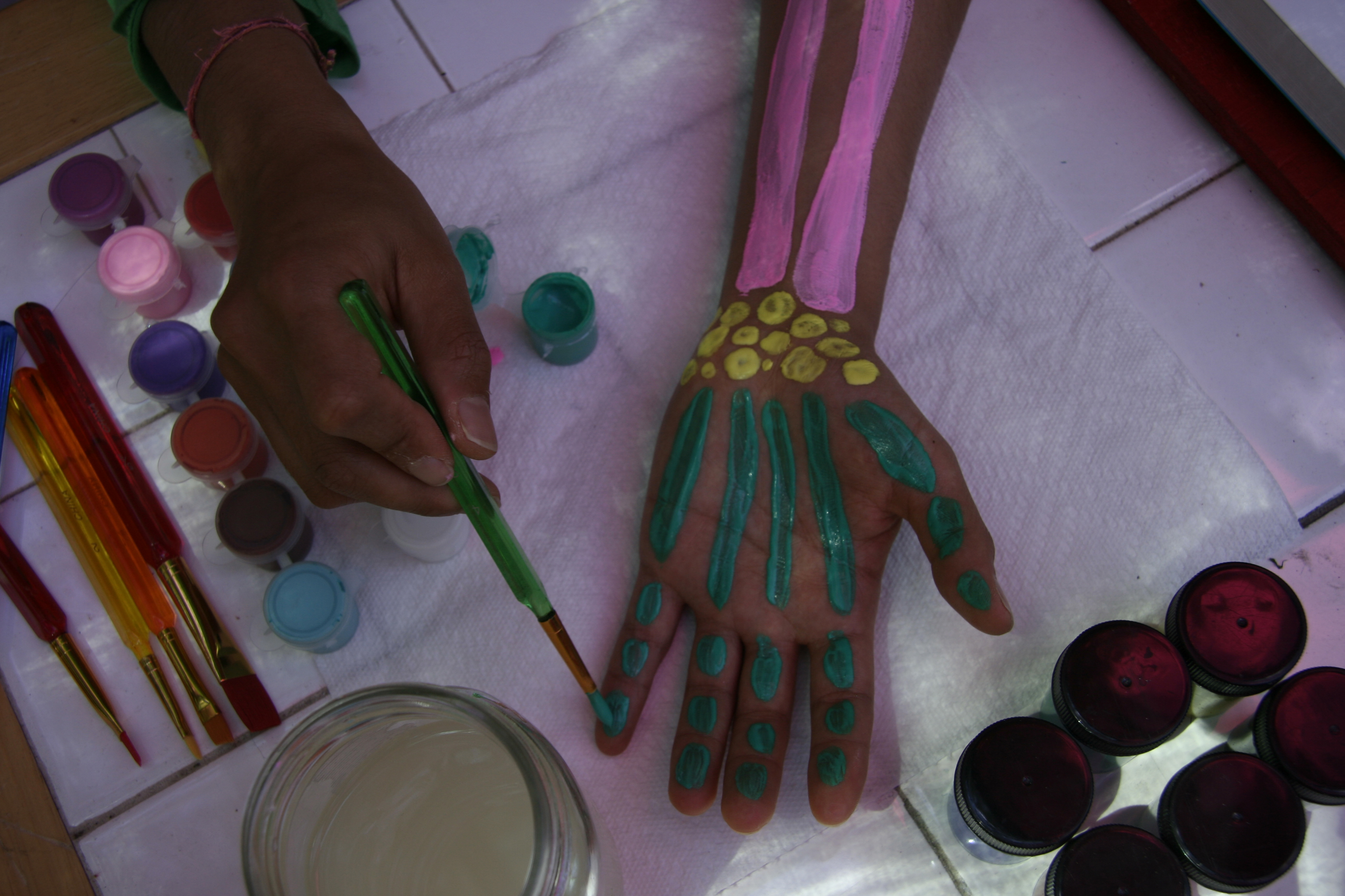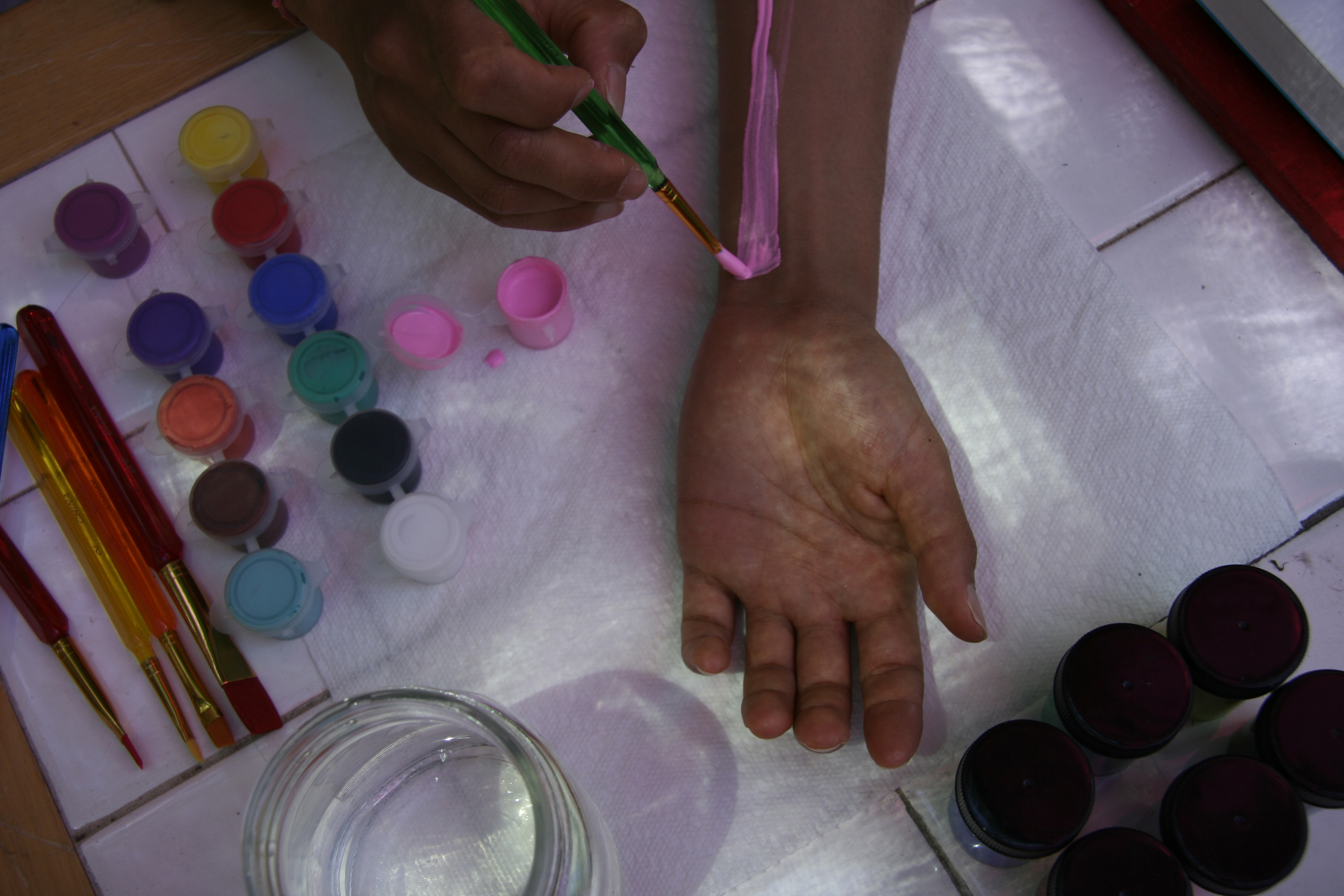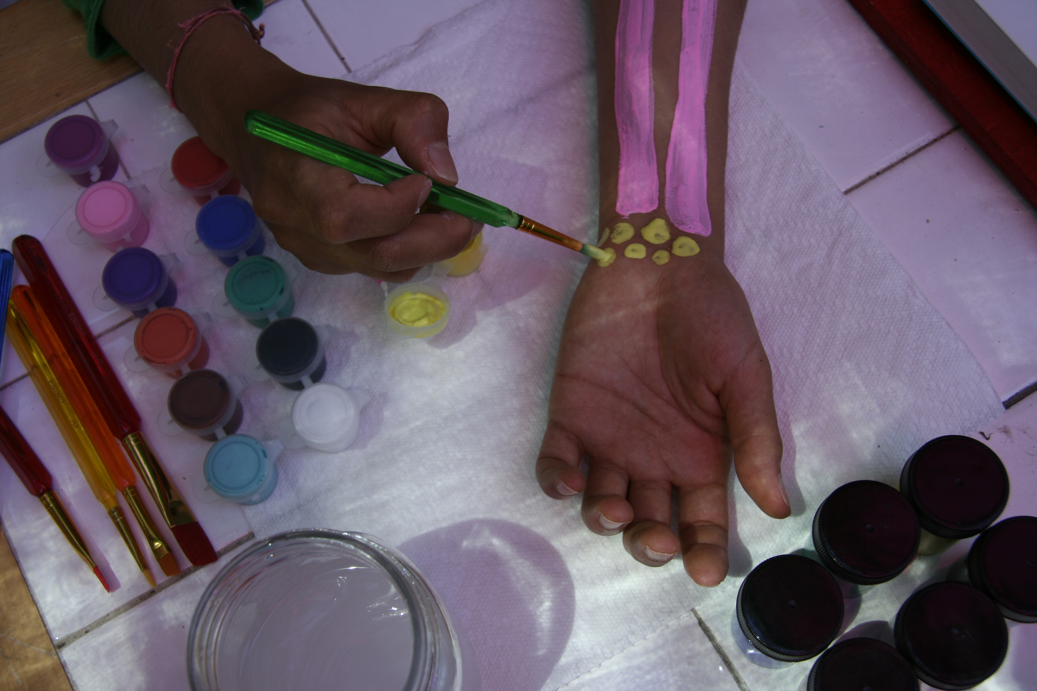 In the woods documents the discovery of the body of an inhabitant of the future utopian fantasy world No Place, created by Saya Woolfalk. As the artist founder of the group of Empathics, she and the rest of her group set up a greenhouse to excavate the site. They come to believe that the bones were sent to them by these future inhabitants.