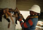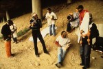 Senga Nengudi “instigated and conceived” Ceremony for Freeway Fets, a collaborative performance held at a Los Angeles freeway underpass to mark the installation of Nengudi’s public artwork, Freeway Fets. She adds, “Ceremony for Freeway Fets was a piece of mine that Maren, David, and others performed in.” Maren Hassinger, a participant in the performance, concurs, noting that the performance “was definitely her inspiration…In fact, the freeway piece was part of her participation in a CETA, Title VI Grant from Brockman Gallery Productions in Los Angeles. Many participated in this piece, but Senga was definitely the initiator and maker of many props, etc.” It was sponsored by CalTrans.