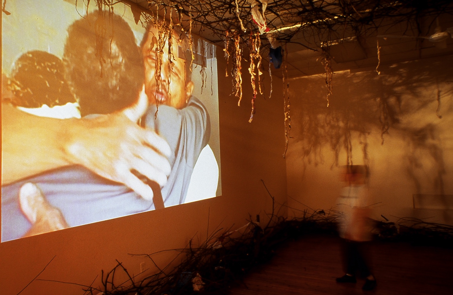 Medium:35mm slide Comments: “The River” is an installation made with tree branches, plastic bags, and old newspapers, with a ten-minute video projection.