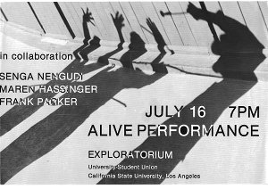 Tags: 1980, Alive Performance, Artist Collaborations, Cal State, California State University, event, Frank Parker, Franklin Parker, Los Angeles, Maren Hassinger, monochromatic, performances, posters, Senga Nengudi