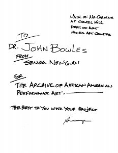 Tags: artist note, John Bowles, monochromatic, Senga Nengudi, text